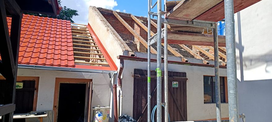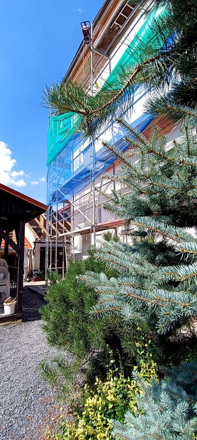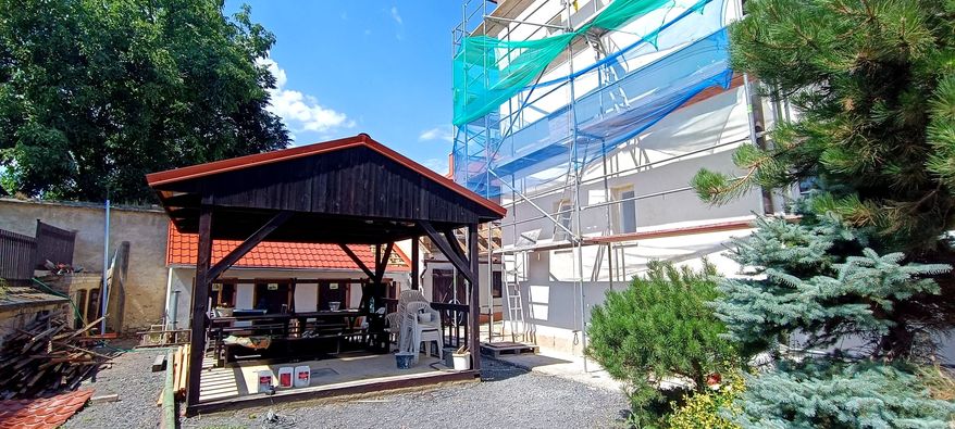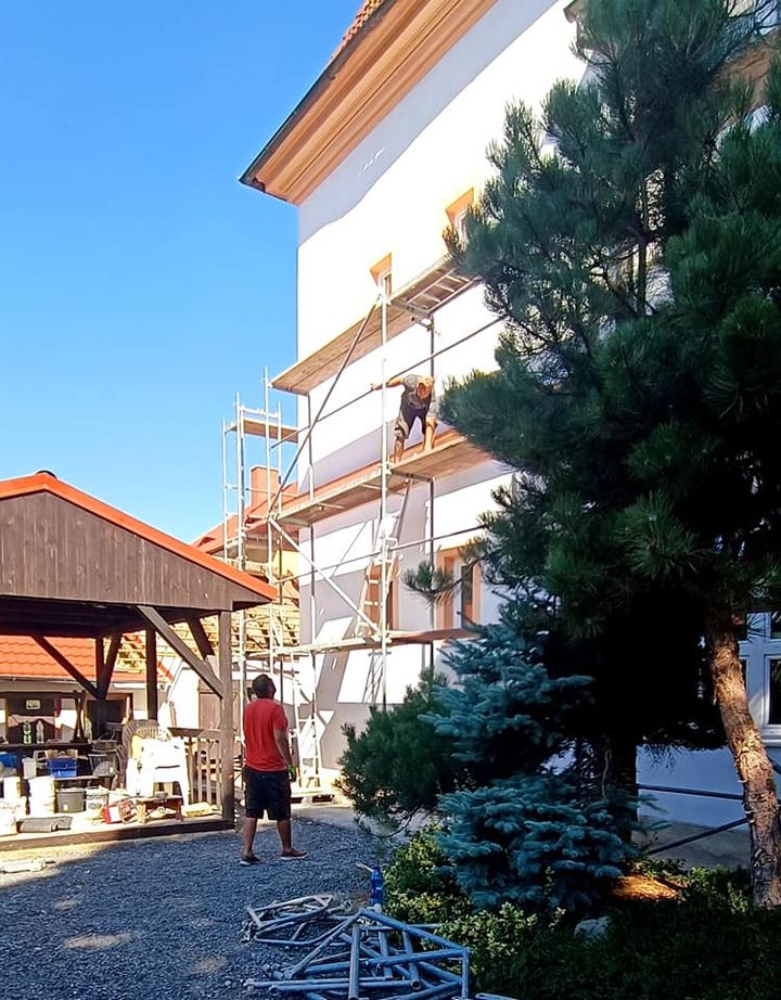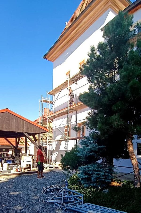 Prázdninové období ve znamení rekonstrukce, oprava fasády budovy školy pokračuje v plném proudu