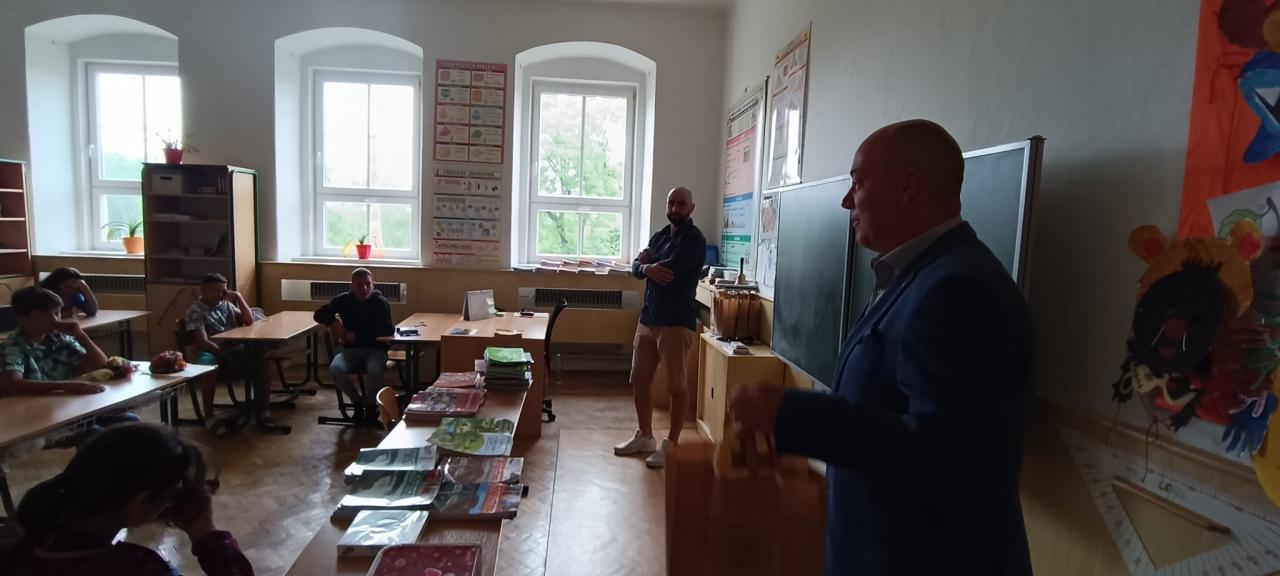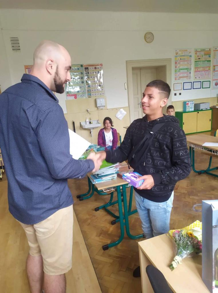 Předávání vysvědčení a odměn od třídních učitelů a pana starosty za vynaložené úsilí v poznávání a nabírání nových zkušeností, poznatků a dovedností .