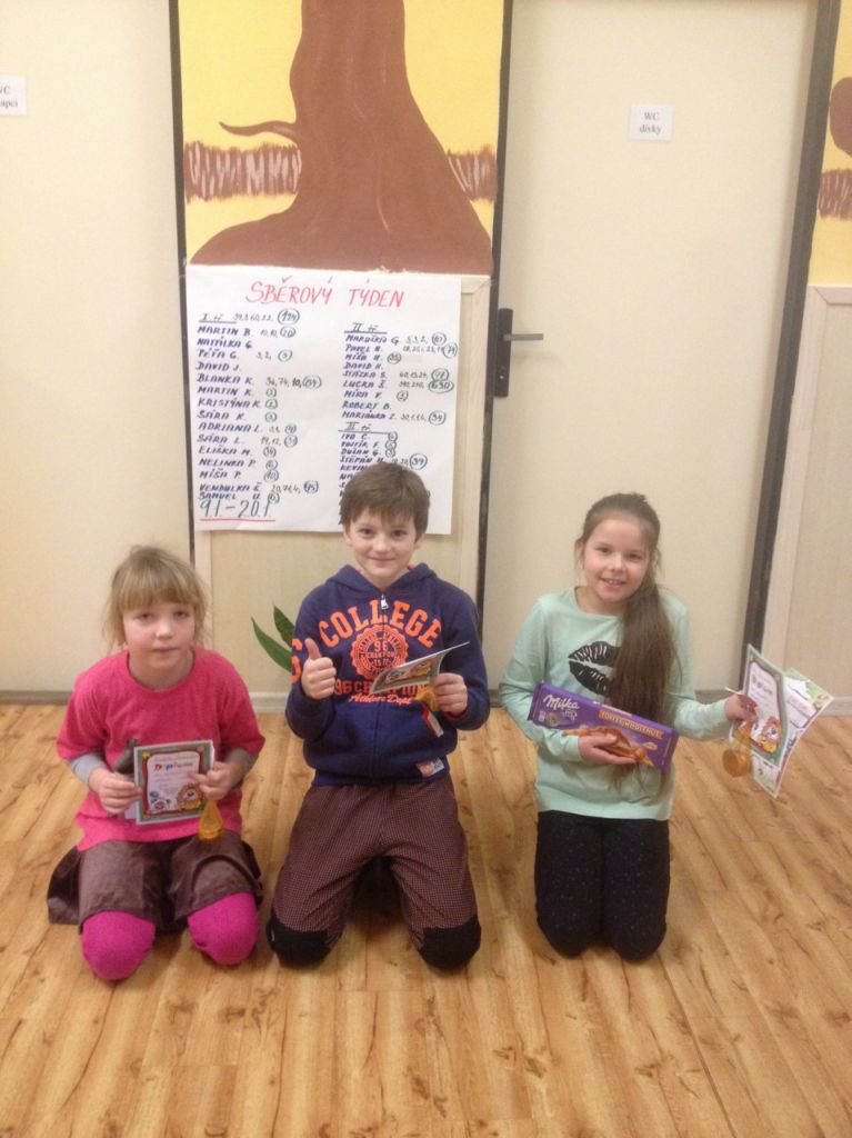 Nejpilnější sběratelé z každé třidy byli osměněni sladkou odměnou ! :-)
