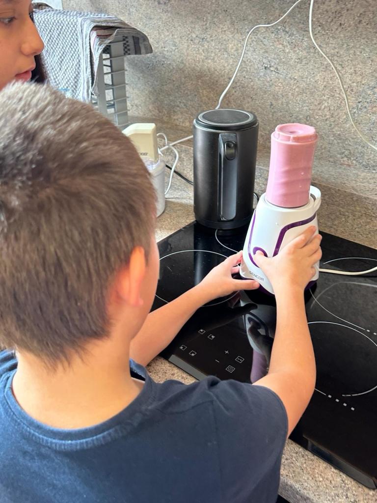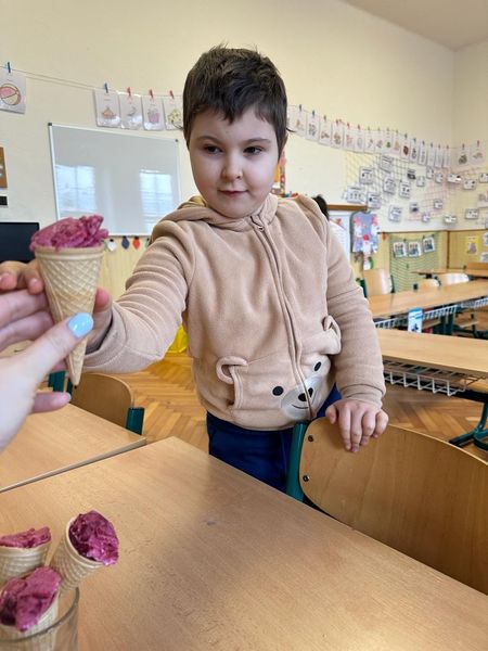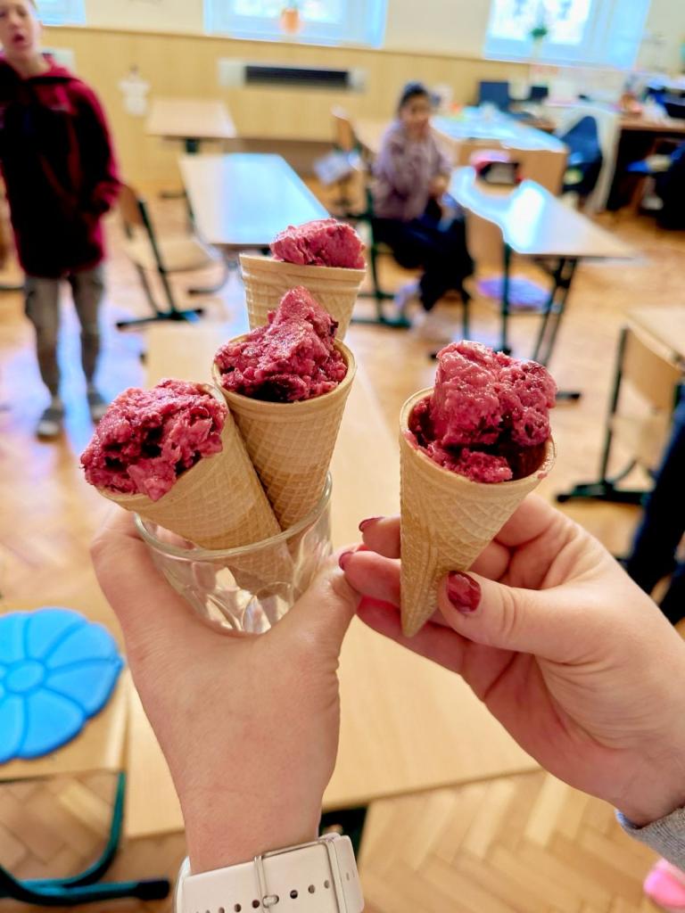 V rámci projektového dne "Škola alchymie" jsme se pustili do vyzkoušení různých pokusů a jedním z nich byl výroba zdravé domácí zmrzliny a ovocného koktejlu, výborné....