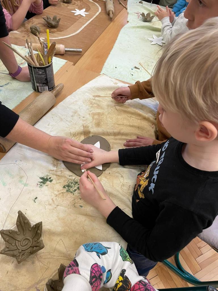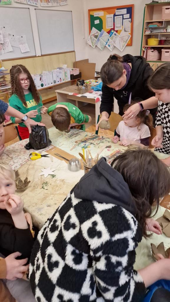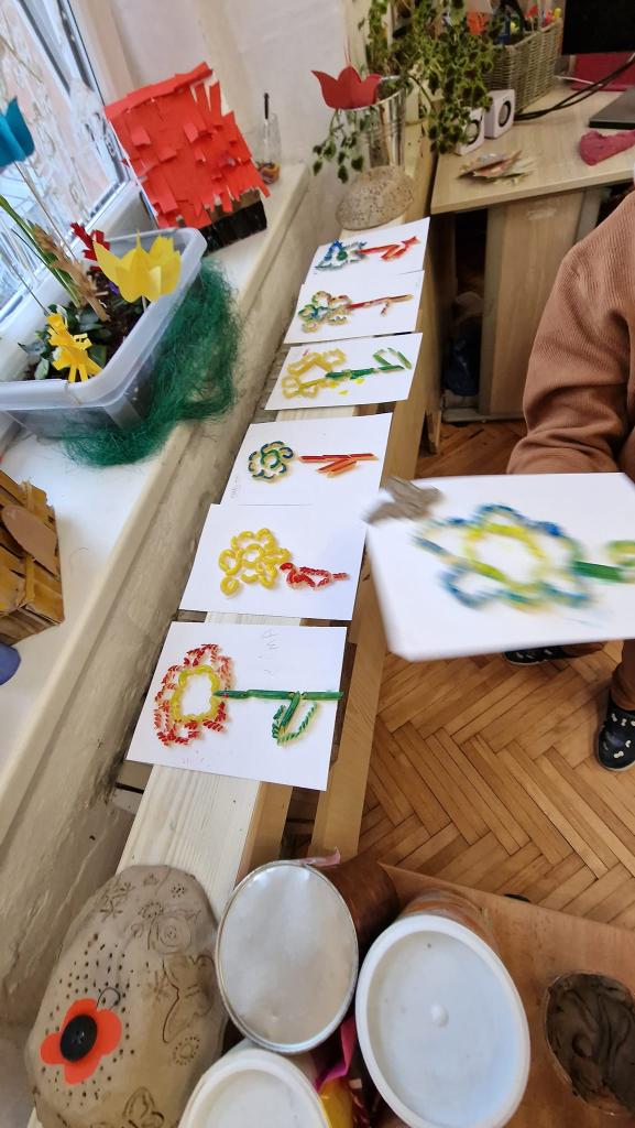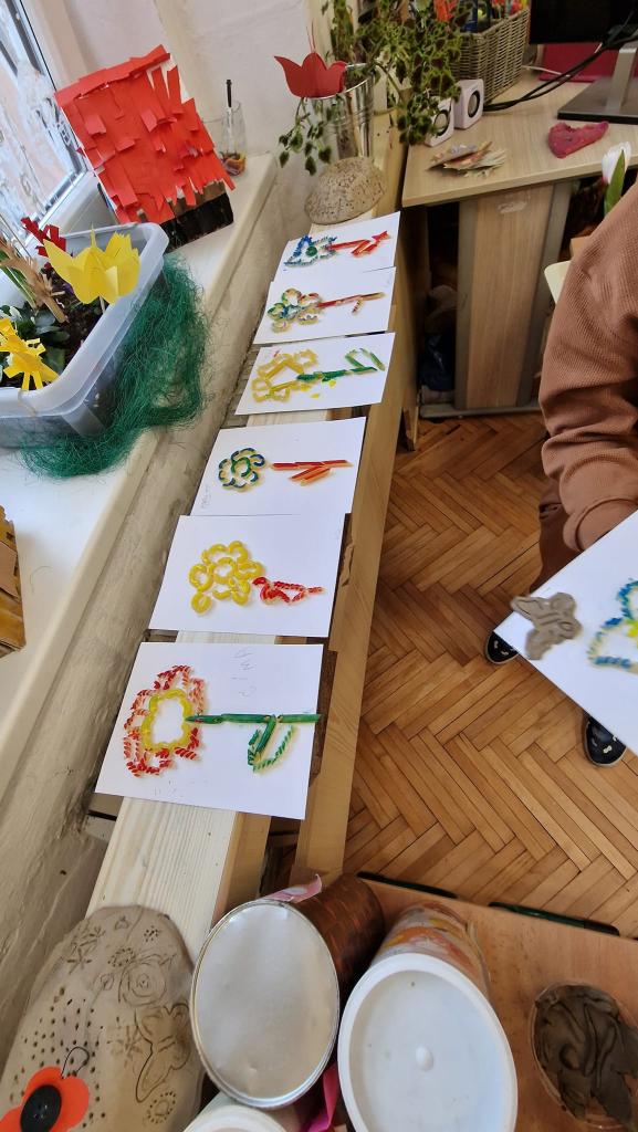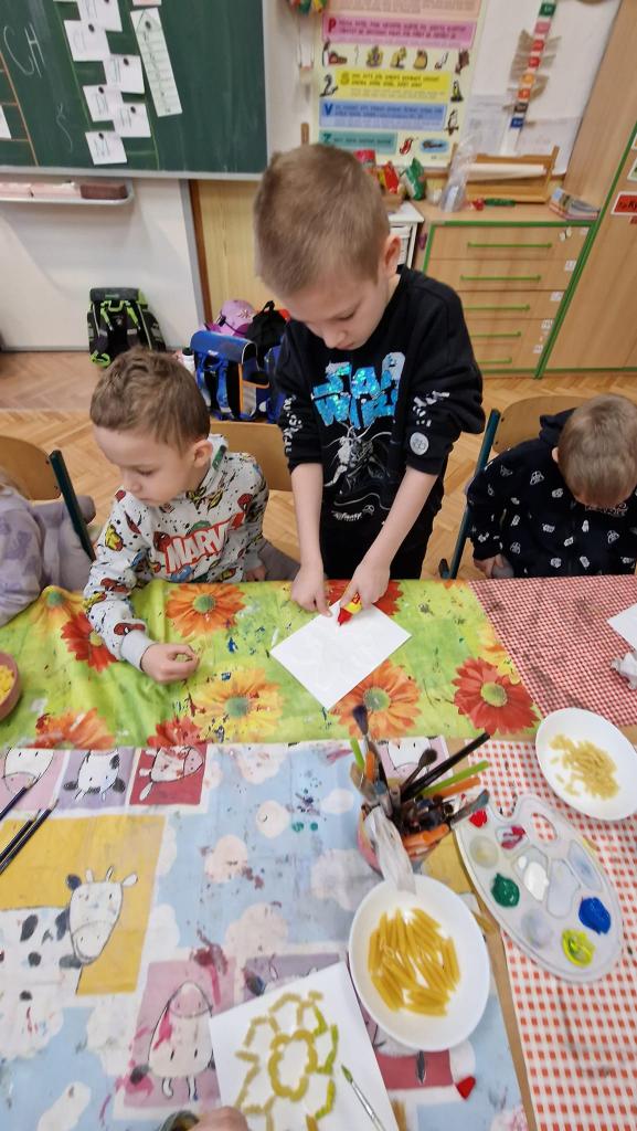 29. 2. Dnešním dopolednem s předškoláčky jsme navázali na naše přivolávání jara. Vytvořili jsme kytičky z keramiky a na čtvrtku jsme si lepili těstovinové kytičky, které jsme nabarvili, aby byly veselé. Stihli jsme si zazpívat, zatancovat, rozpohybovat se, nalepit těstovinové kytičky, vytvořit si je také z keramiky. Na závěr probíhalo jako vždy logogpedické cvičení...