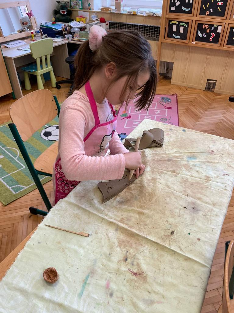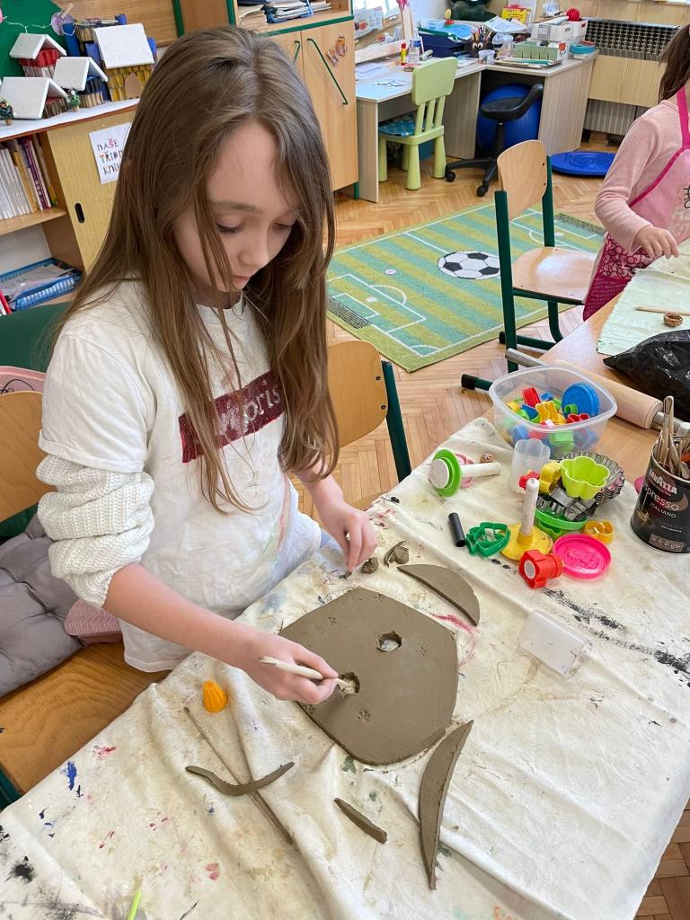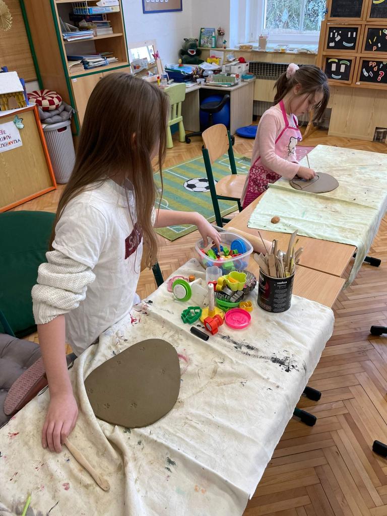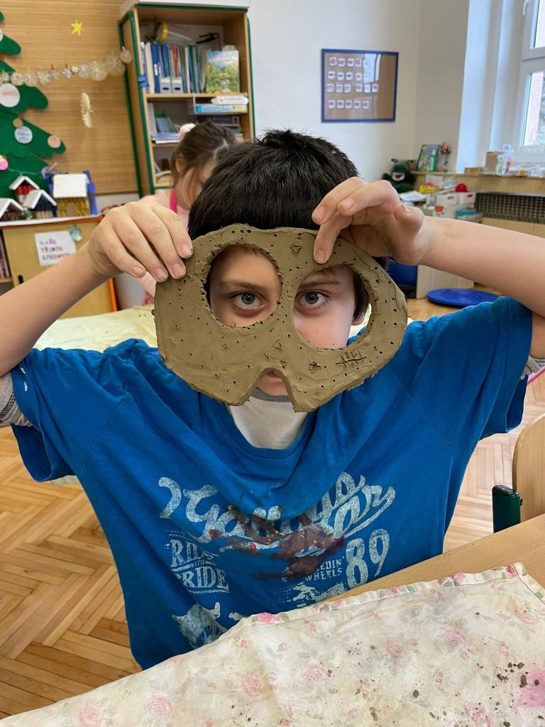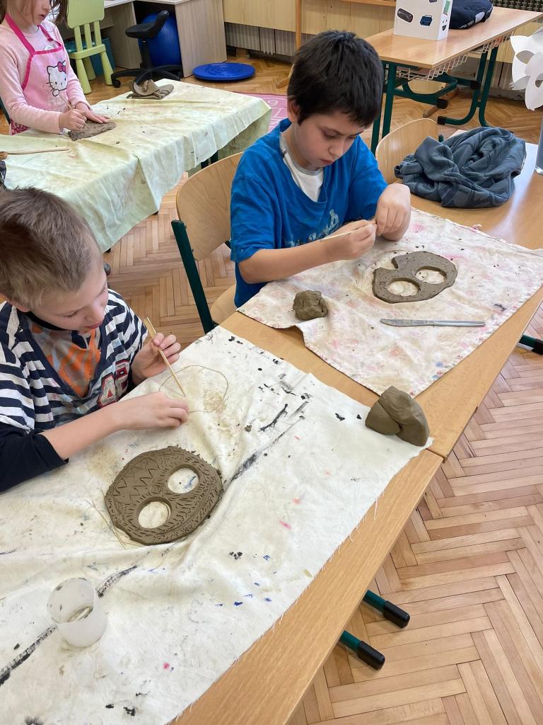 Dnešní volnočasové aktivity - kroužek keramiky. Děti si tvořily keramické masky. Blíží se masopust, na který se už moc těšíme a tak začínáme s předstihem.