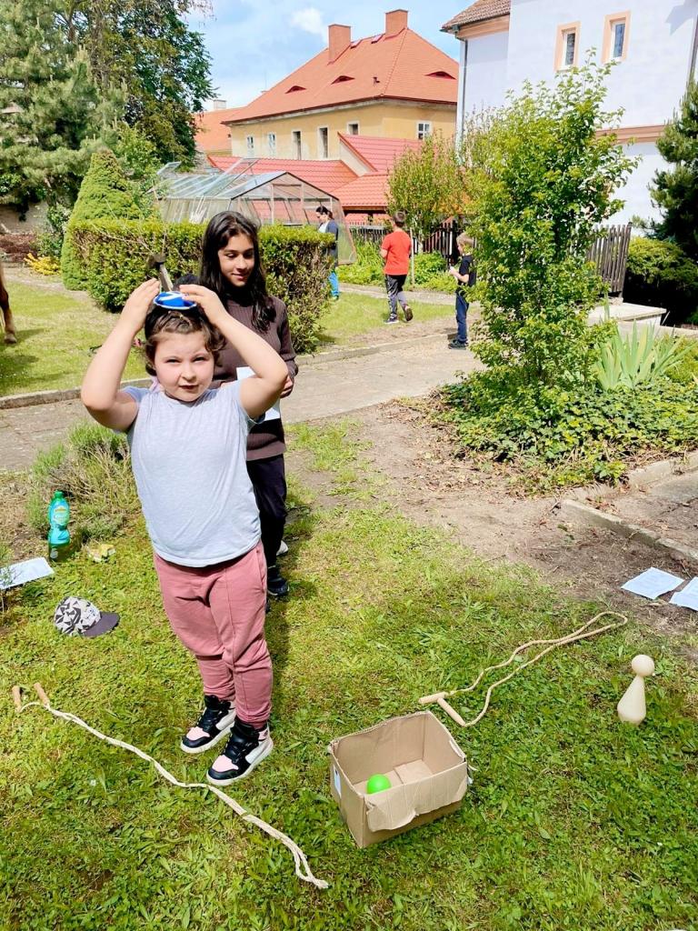 Dnešní projektový den k MDD - užili jsme si krásného počasí, soutěží, projížďky na konících