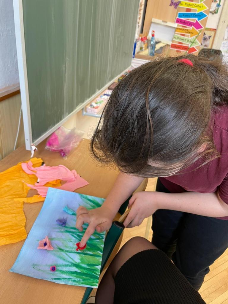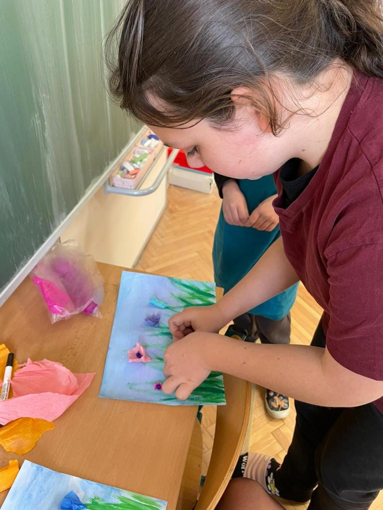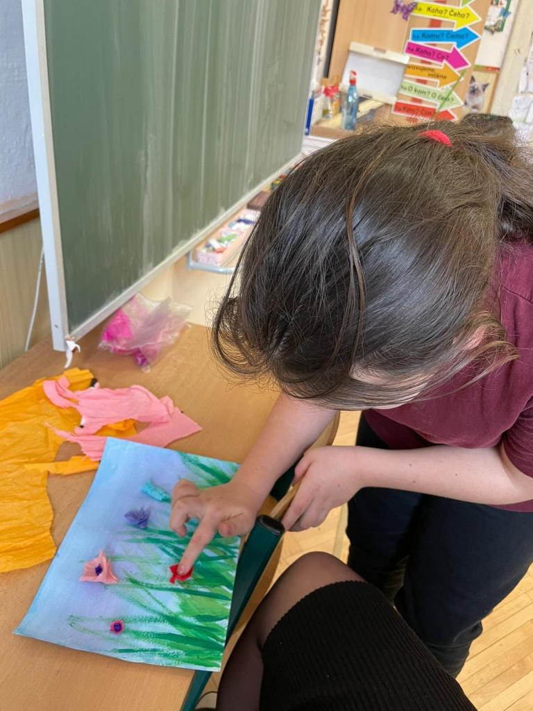 Dnešní volnočasové odpolední aktivity PICASSOVÉ tvořili louku s rozkvetlými kytičkami