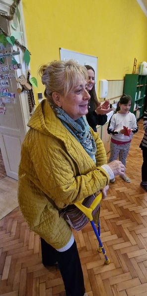 25. 4. Dočkali jsme se , po netrpělivém čekání jsme měli možnost paní učitelku přivítat, předat jí vytvořená umělecká díla v podobě obrazů, přáníček, nechyběla hudební a recitační produkce