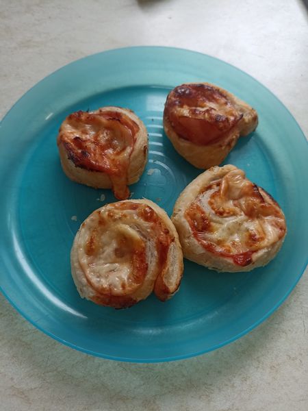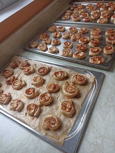 ovarová polévka, rybí filé obalené, vařený brambor, zeleninová obloha. Odpolední svačinka - pizza šneci výborné, děkujeme