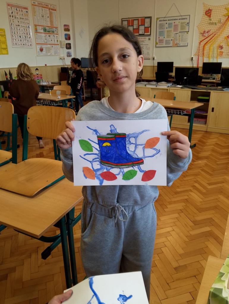 Děti se nechaly inspirovat tím, co máme na podzimu rádi – skákáním v kalužích a bezstarostnou radostí, kterou zná každý z dětství. ![]()