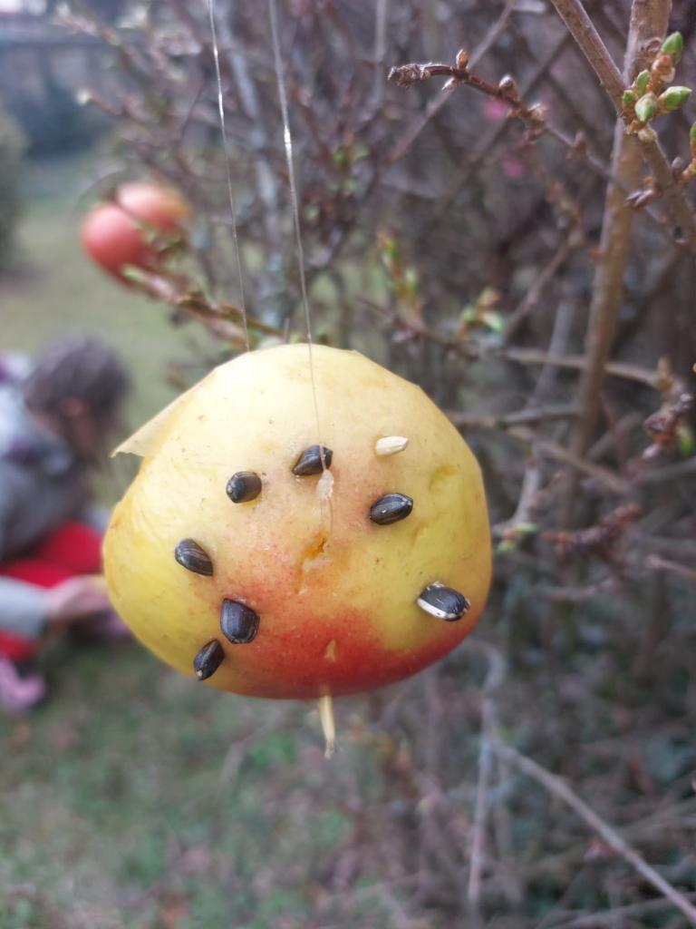 ještě neskončila, připravili jsme pro ptáčky pár dobrot a rozvěsili je na školní zahradě