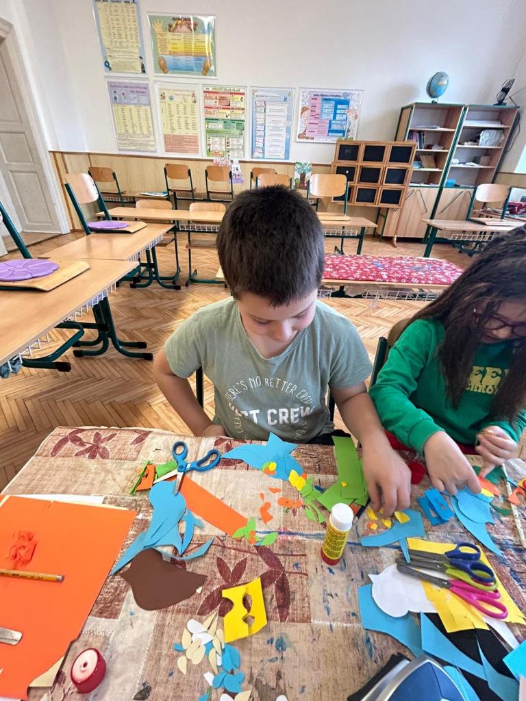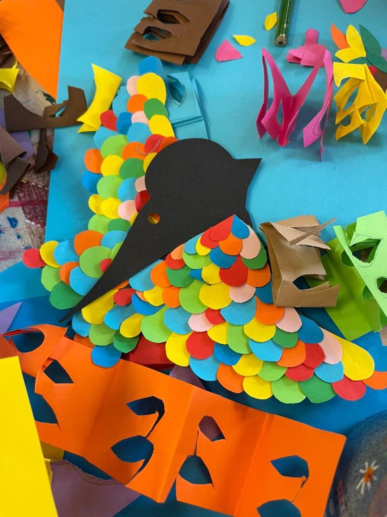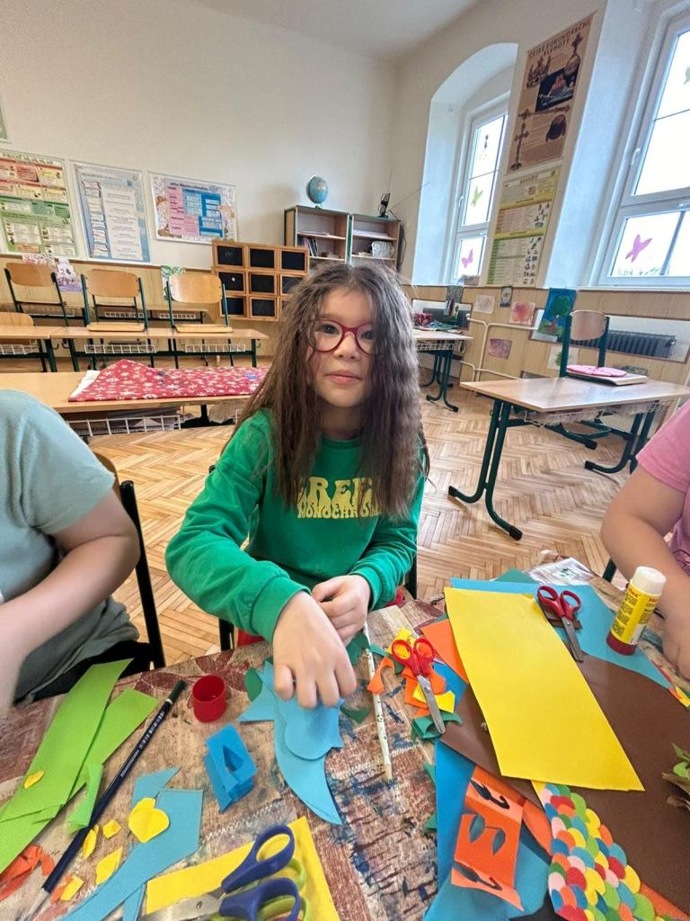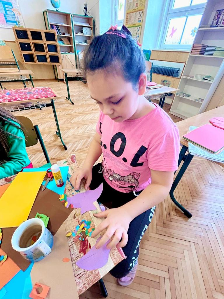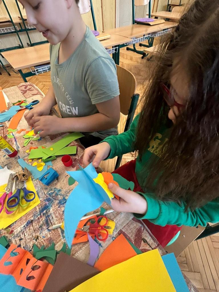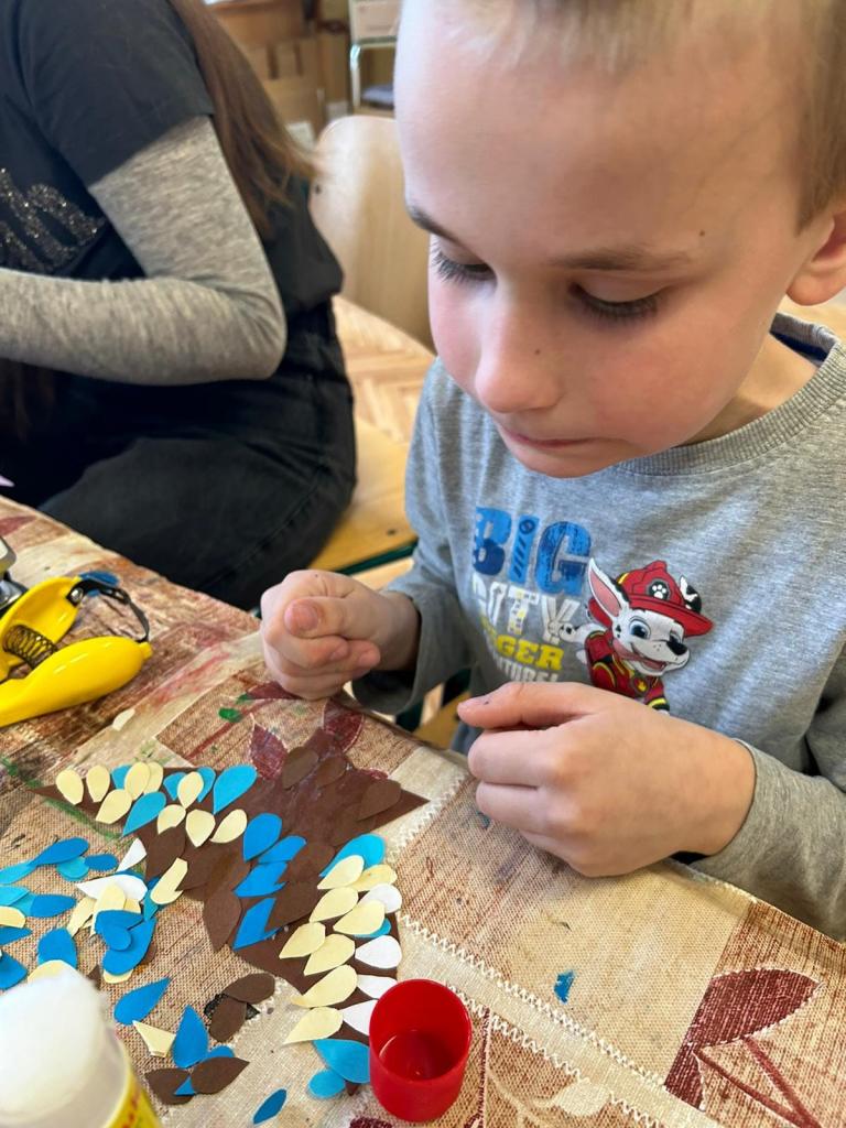 Volnočasové aktivity PICASSOVÉ - na výtvarném kroužku jsme se věnovali tvorbě ptáčků pro výzdobu chodeb mezi krásné mráčky z předchozího tvoření