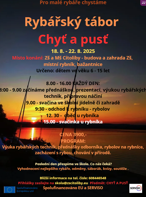 Pro náš Rybářský komunitní tábor - Chyť a pusť budou uvolněny finanční prostředky pro nákup odměn pro účastníky tábora a dále mzdové prostředky pro jednoho intruktora tábora.