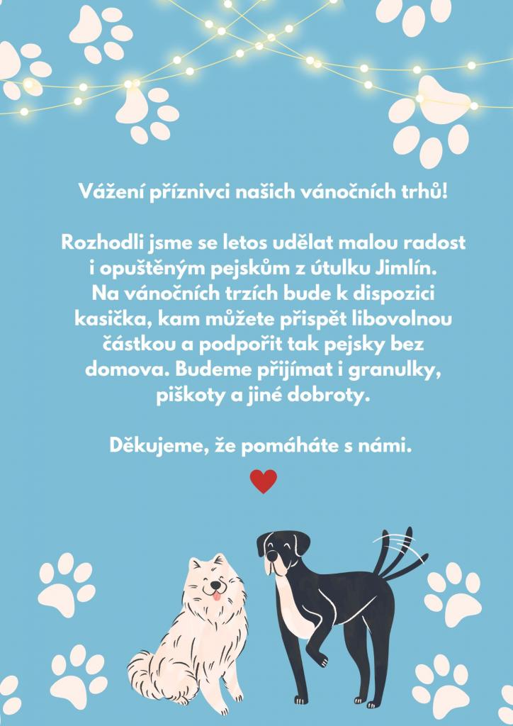 V rámci vánočních trhů se naše škola rozhodla uspořádat charitativní akci - Pomáhejte s námi opuštěným zvířecím kamarádům.